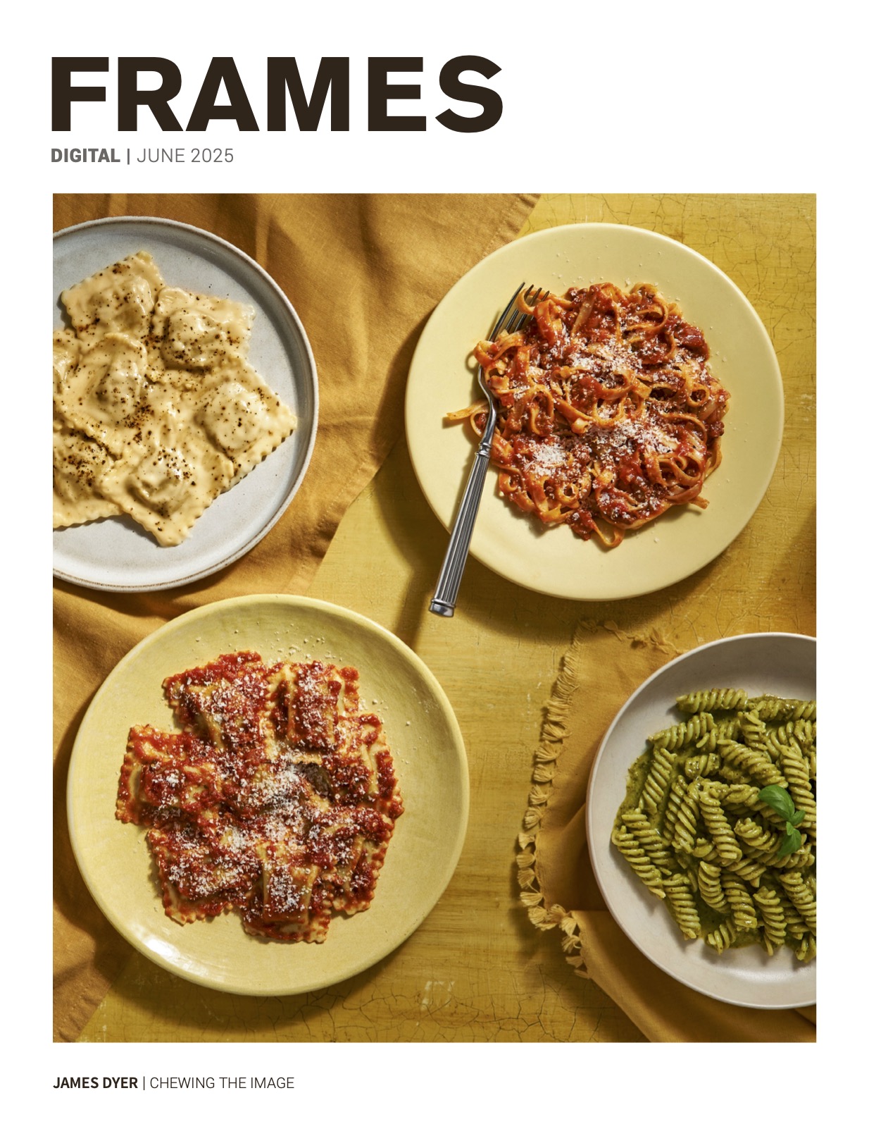 As such, our attention is not pulled because of the subject — the stylised foodstuff — but because of the opportunity the photographs present: with so many options the perfect meal must be available, all that’s needed is our deft selection. This narrative is mirrored in the angle of the photographs too. Think of the camera, like an aerial survey, locked parallel to the terrain of tablecloths, plates, and cutlery below. Everything is visible under the bright studio lights, which is to say that nothing is hidden, it’s a disembodied god’s-eye-view that stokes a sense of power in the viewer’s choice as a consumer. As such, these displays of worldly cuisine solicit an appetite for taste, an urge for good judgement.