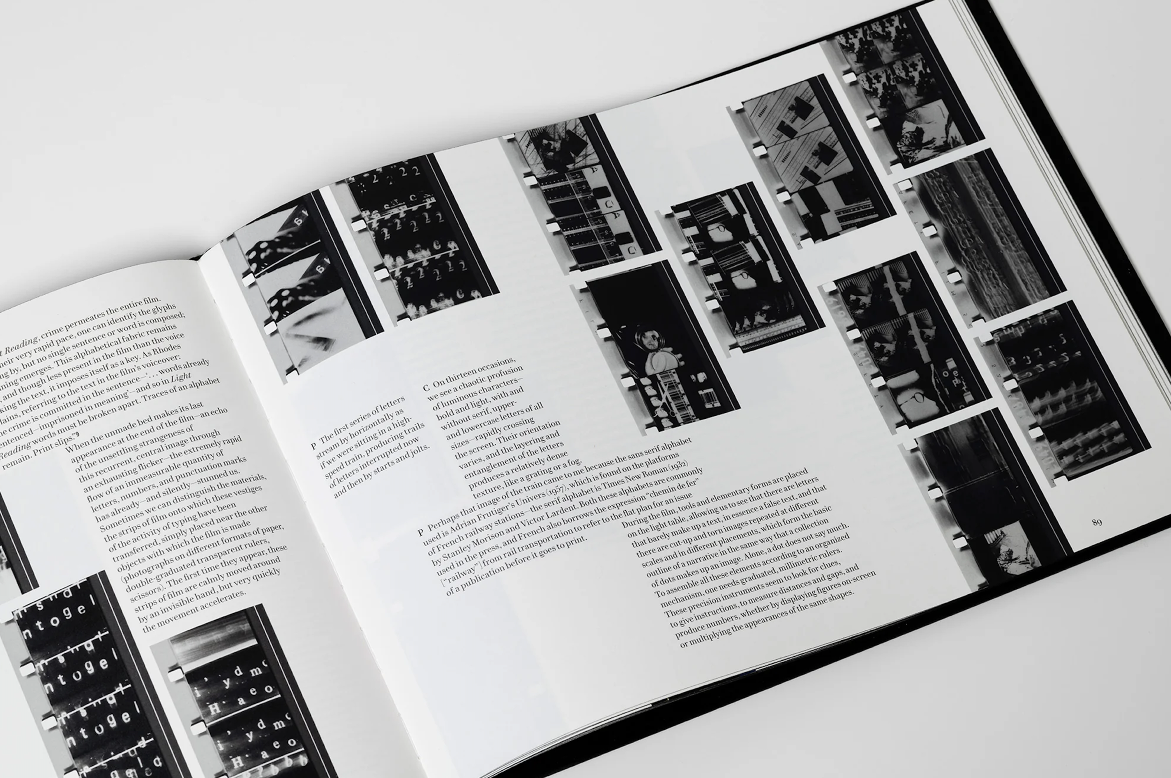 Read Frame Type Film is a book about the overlooked relationship between cinema and typography, it is proudly described in the introduction as an “anthology of marginalia”. Across an eclectic array of twenty-four experimental films ranging from 1926 to 1984 the three co-authors consider text and film from their respective vantages as specialists in moving image (Enrico Camporesi), art history (Catherine de Smet), and typography (Philippe Millot). They don’t hide the differences of their perspectives and they implicitly encourage the reader to develop their own too — the cover, afterall, looks like a screen awaiting projection and a viewfinder waiting for an eye. In Robin Kinross’ foreword he pulls attention to this kind of multiplicity of perspective: “The style of letterforms may mean something to those who design them, something else to those who use them, something else again—perhaps very little—to those who see and read these letterforms in use”. As such, throughout the book, it gradually becomes more clear that the co-authors are not necessarily wanting to change the way we see (or don’t see) type in film but that they are wanting to inform the way we see it. They are ultimately successful in this not because of the strength of their argument but by the conviction of their writing.